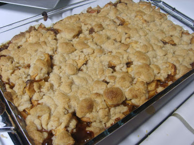 Step #4: Combine flour, 1 cup sugar, and butter in a medium sized bowl. Use your fingertips to blend the mixture until until a coarse meal forms. Spread the mixture evenly over the apples. (My butter was a little too soft I think...my bad).